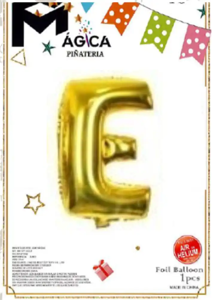 Haz que tu decoración brille con el Globo Letra “E” Dorada Metalizada de 32 pulgadas. Su acabado espejo en tono dorado intenso aporta elegancia y un efecto visual impactante, ideal para celebraciones sofisticadas y modernas.