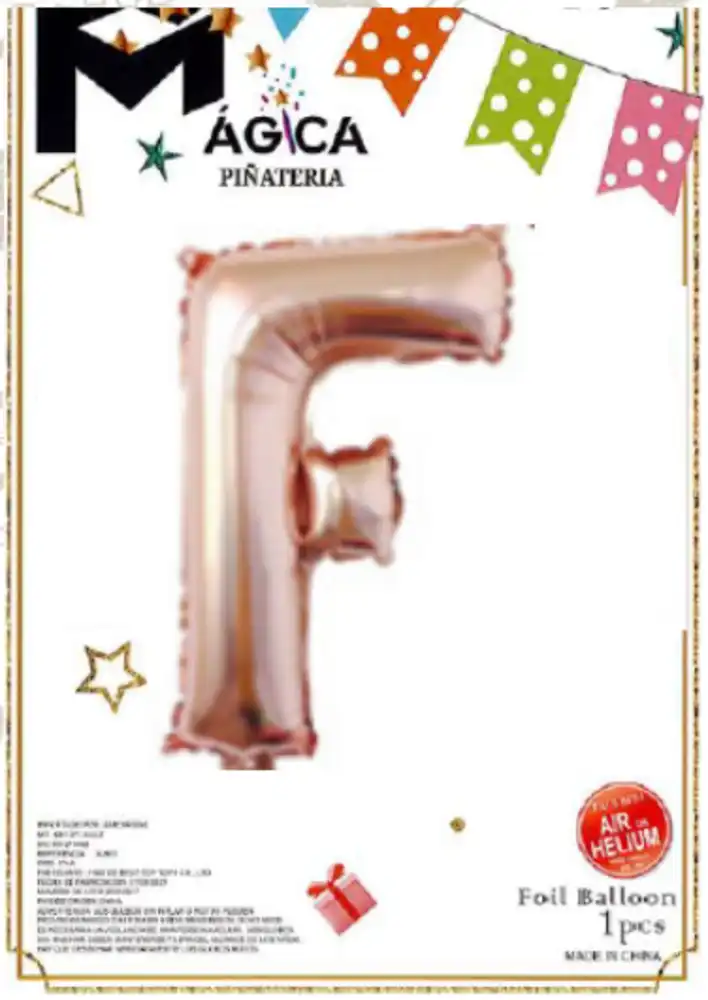 Agrega un toque moderno y sofisticado a tu decoración con el Globo Letra “F” Oro Rosa Metalizada de 32 pulgadas. Su acabado espejo en tono rose gold es perfecto para celebraciones elegantes y decoraciones en tendencia.