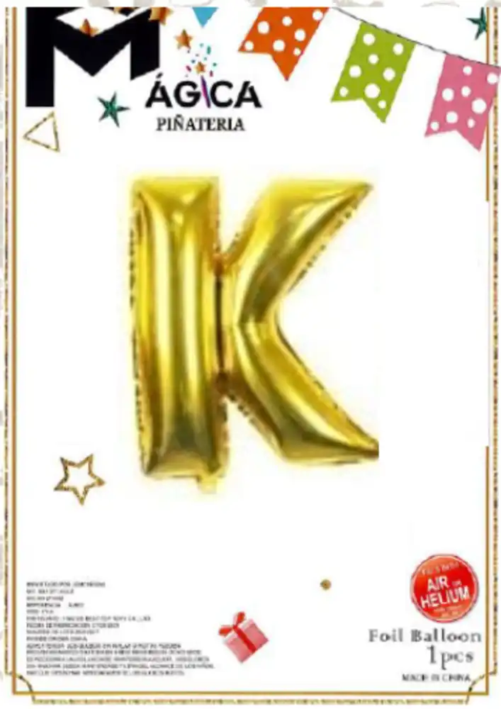 El Globo Letra “K” Dorada Metalizada de 32 pulgadas es perfecto para decoraciones llamativas y elegantes. Su acabado brillante efecto espejo en color dorado aporta un toque sofisticado ideal para celebraciones especiales y montajes de gran impacto visual.