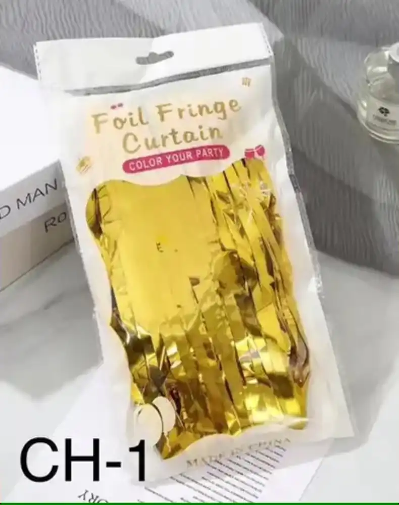 Crea un ambiente festivo y elegante con esta cortina decorativa de tiras metálicas, perfecta para decorar todo tipo de celebraciones. Su acabado brillante en color dorado aporta un efecto llamativo que realza cualquier espacio, ideal para utilizar como fondo para fotos, entrada de eventos o decoración de paredes.