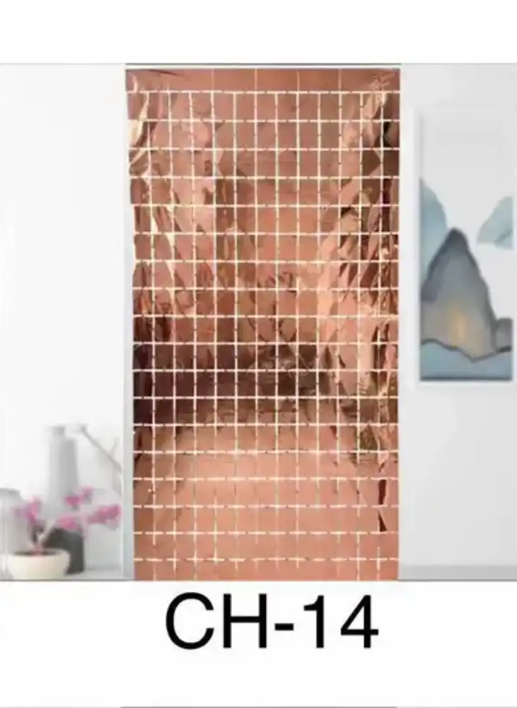 Dale un estilo elegante y moderno a tus celebraciones con esta cortina decorativa metalizada en color oro rosa. Su acabado brillante y sofisticado aporta un toque delicado y glamuroso que realza cualquier ambiente festivo.