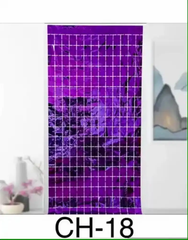 Dale un toque vibrante y elegante a tus celebraciones con esta cortina decorativa metalizada en color morado. Su acabado brillante refleja la luz creando un efecto llamativo que resalta en cualquier espacio y aporta un ambiente festivo y moderno.