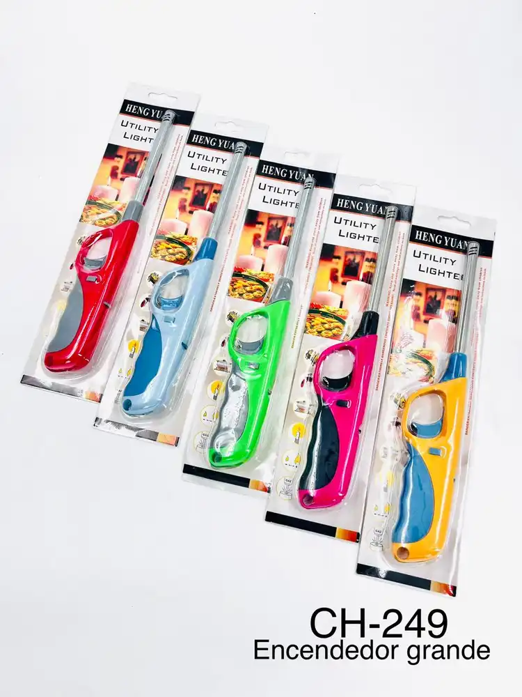 El encendedor grande de cuello largo es una herramienta práctica y segura diseñada para facilitar el encendido de velas, estufas, parrillas, chimeneas y otros elementos del hogar. Su diseño alargado permite alcanzar zonas profundas o de difícil acceso, brindando mayor comodidad y seguridad durante su uso.
