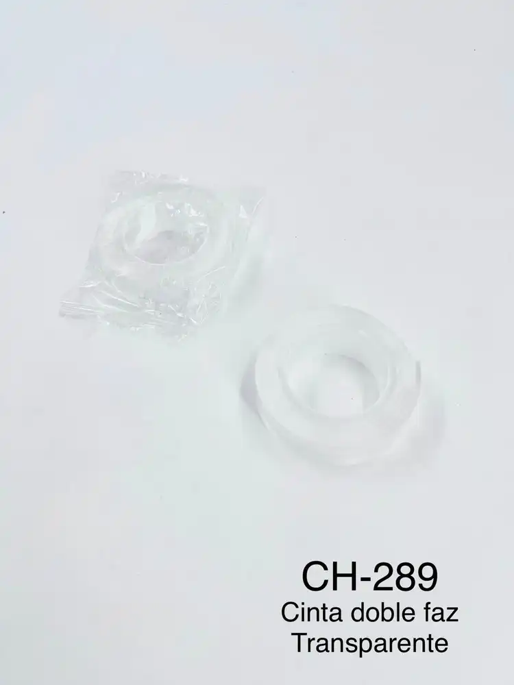 Práctica cinta adhesiva de doble cara y acabado transparente, ideal para fijar objetos de forma discreta y segura en diferentes superficies. Su diseño permite una adhesión firme sin afectar la estética, ya que permanece casi invisible después de aplicada.