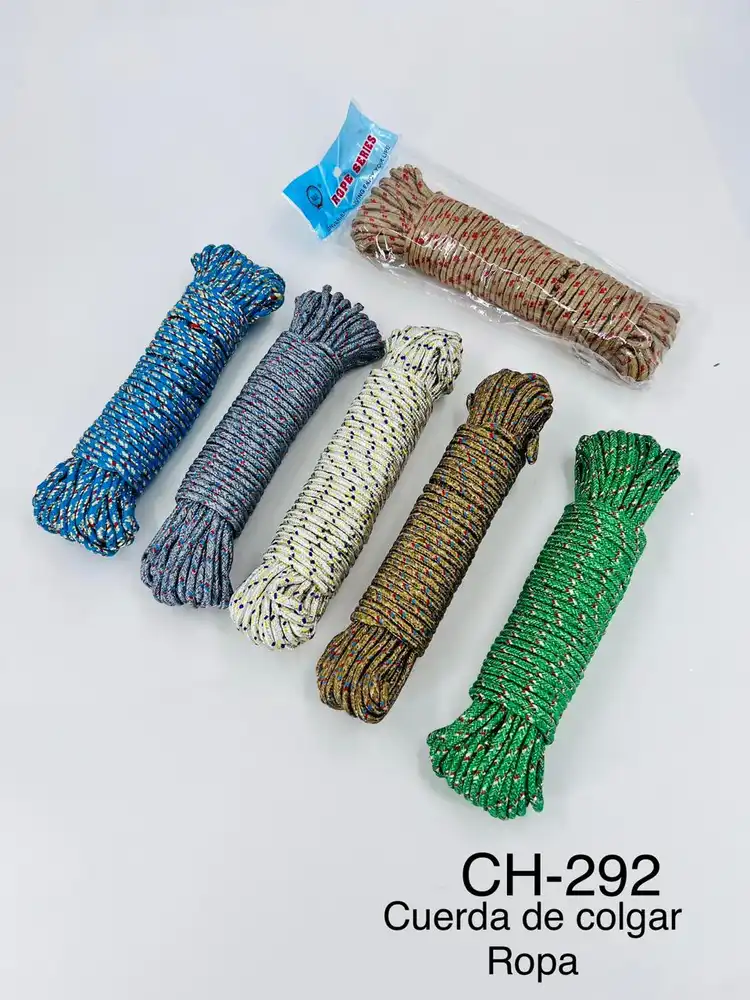 Práctica y resistente cuerda multiuso ideal para colgar ropa en el hogar, patios, terrazas, balcones o durante viajes y campamentos. Fabricada con material trenzado de alta resistencia, ofrece gran durabilidad y soporte para prendas húmedas o pesadas.