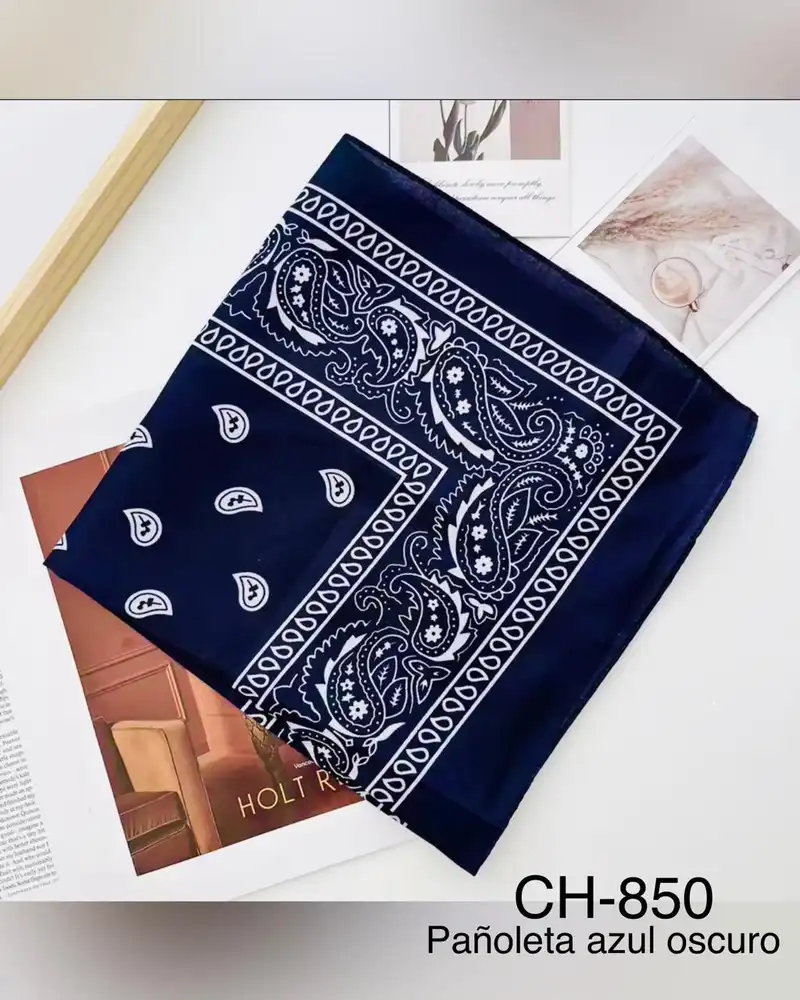 CH-850//🔵 Pañoleta Azul Oscuro con Estampado Blanco – Accesorio Clásico y Elegante