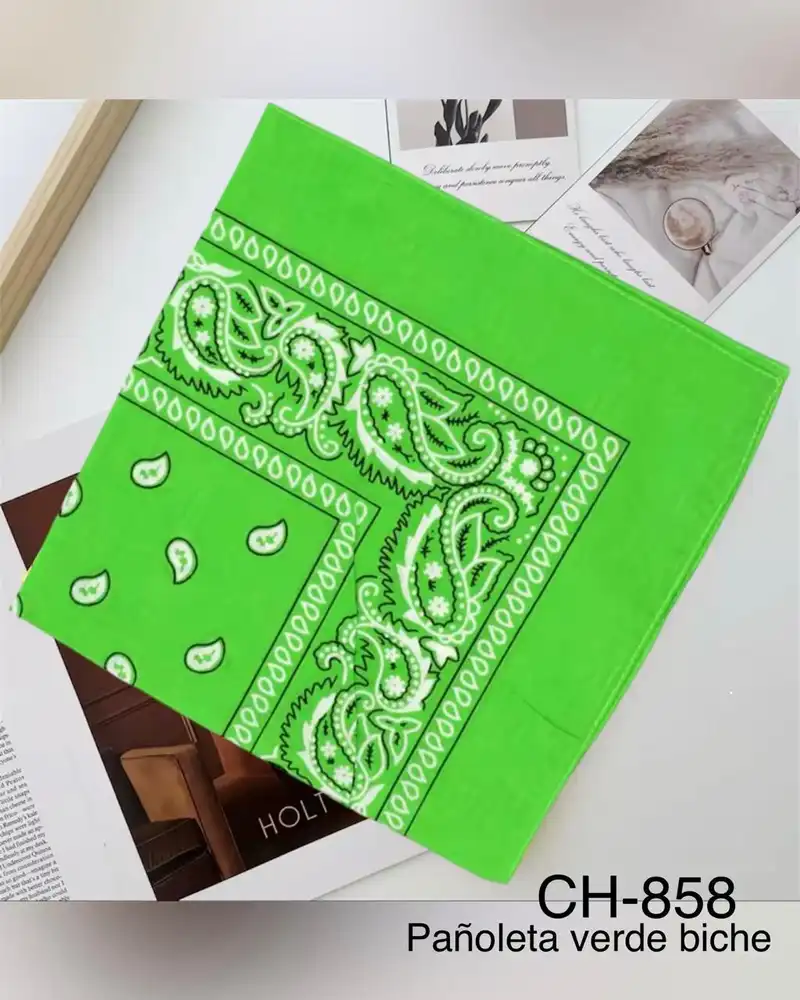 CH-858//💚 Pañoleta Verde Biche con Estampado Blanco – Accesorio Fresco y Urbano