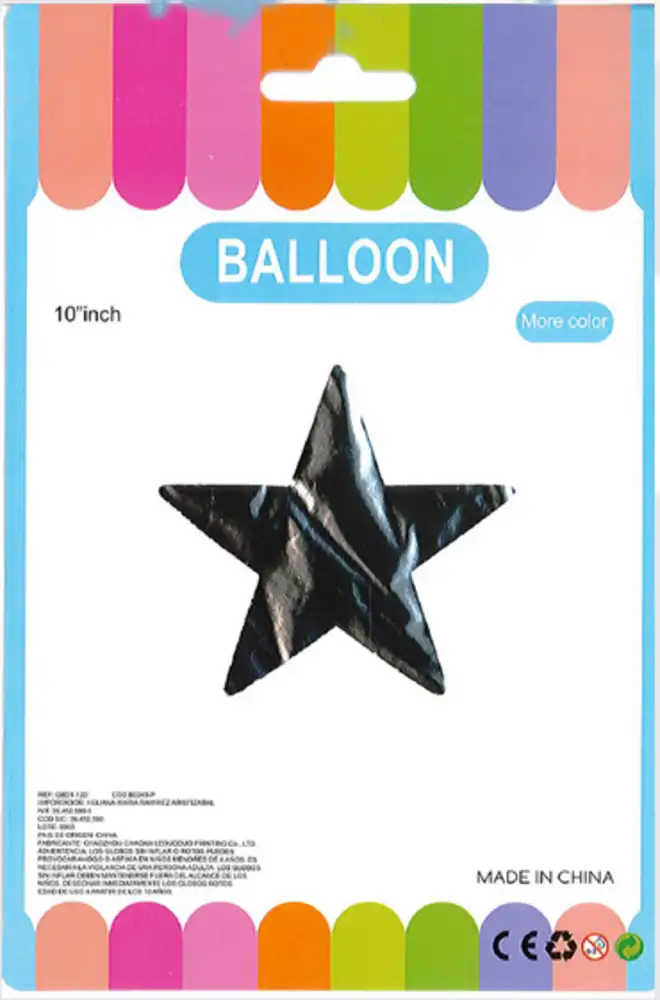 Globo metálico en forma de estrella color plateado, tamaño 10 pulgadas. Su acabado brillante efecto espejo lo convierte en una opción versátil y elegante para todo tipo de celebraciones.