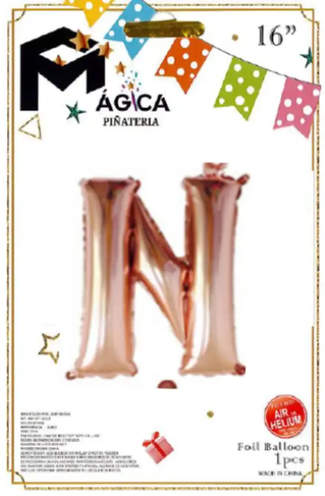 El Globo Letra “N” Oro Rosa Metalizada de 16 pulgadas es una opción delicada y moderna para decorar cualquier celebración. Su acabado brillante en tono oro rosa aporta un estilo elegante y romántico, ideal para cumpleaños, baby showers, aniversarios, despedidas y eventos con temática sofisticada.