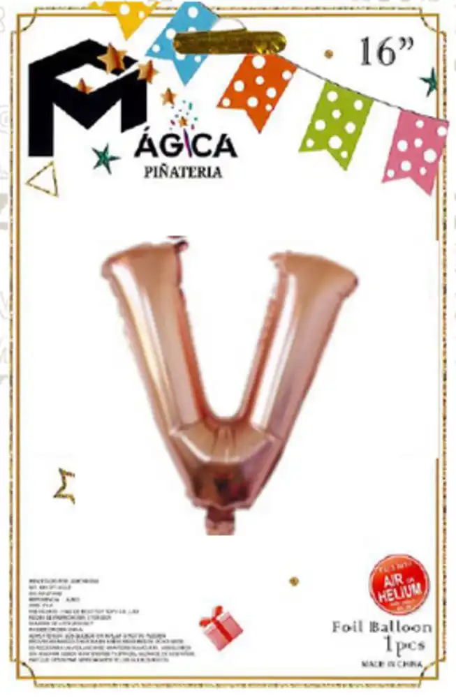 ¡Delicadeza, tendencia y elegancia en una sola letra! Nuestra letra “V” en oro rosa metálico es ideal para decoraciones modernas con un toque romántico y sofisticado.