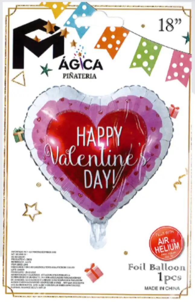 Expresa tu amor con nuestro Globo Metálico en forma de corazón “Happy Valentine Day” Clásico de 18 pulgadas. Presenta un diseño romántico con corazón rojo central, borde en tono rosa y pequeños detalles decorativos que realzan el mensaje en tipografía elegante.