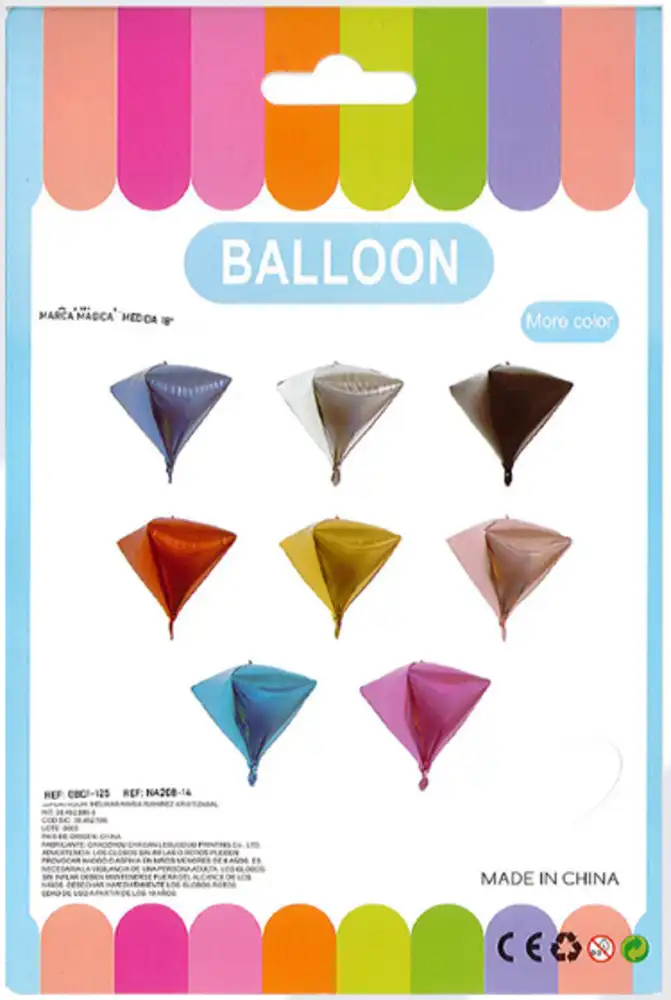 Globo metálico en forma de pirámide geométrica 3D, ideal para decoraciones modernas y temáticas elegantes. Su diseño diferente aporta volumen y estilo a arreglos con globos, centros de mesa o montajes colgantes.