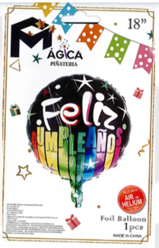 Sorprende con un diseño moderno y vibrante gracias a nuestro Globo Metálico Redondo “Feliz Cumpleaños” con fondo negro de 18 pulgadas. Su elegante base oscura resalta las letras multicolor y detalles brillantes tipo estrellas, creando un contraste llamativo y sofisticado.