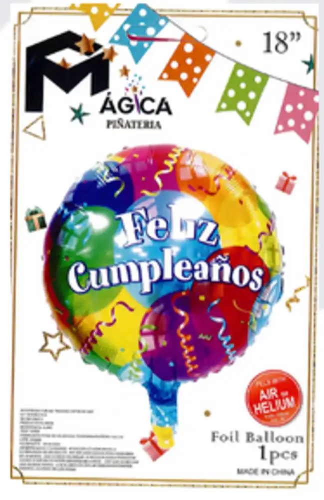 Globo Metálico Redondo “Feliz Cumpleaños” Multicolor 18”