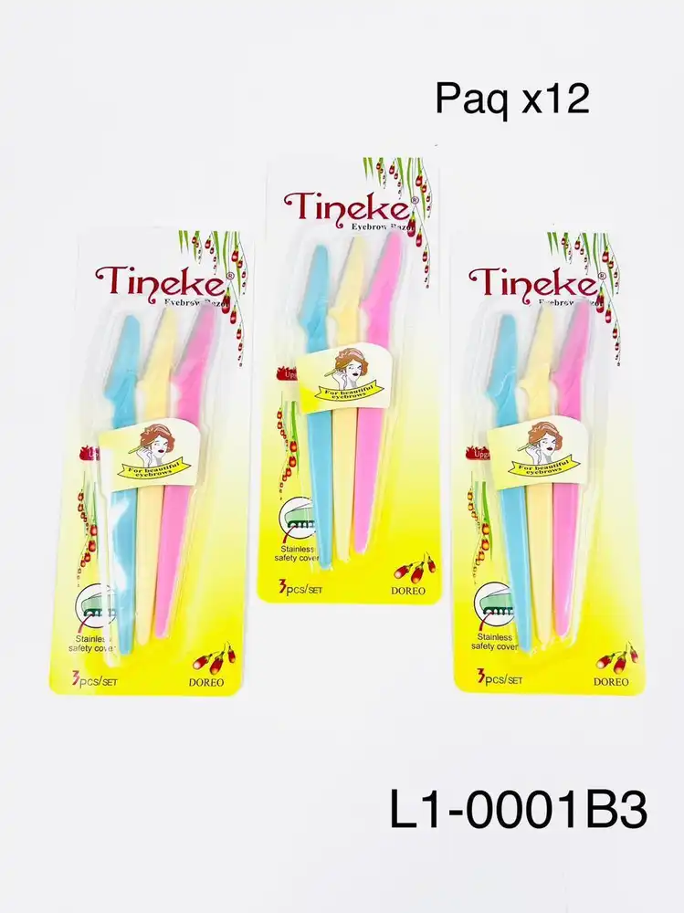 Cada blíster incluye 3 perfiladores de cejas en colores surtidos (celeste, rosa y amarillo).